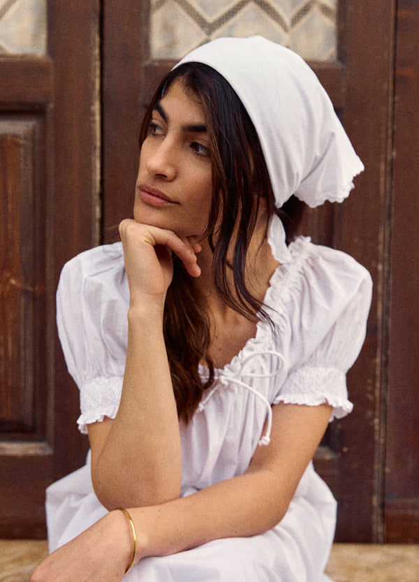 Headscarf - White Embroided